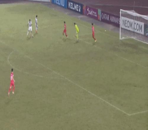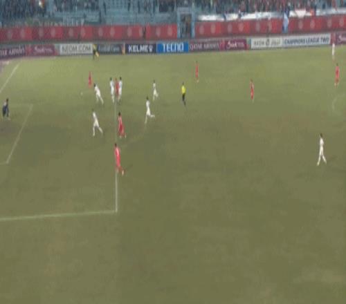比賽的第11分鍾,菲利佩-阮解圍失誤,球打在林良銘的身上反彈入網,1比0!