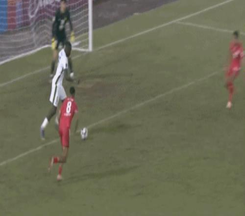 第54分鍾,恩加德烏禁區內橫傳,球打在萊奧-阿圖爾的身上擊中門柱,張健智隨即解圍。