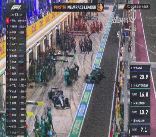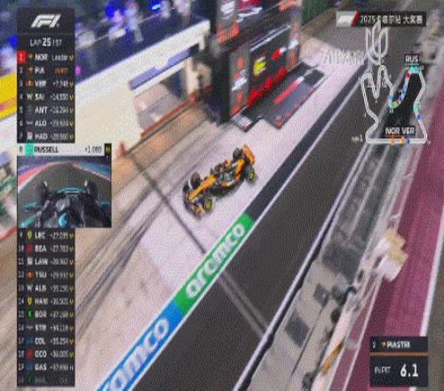 隨後,除了兩輛麥克拉倫之外的所有賽車都進站完成換胎!這就意味著,這些獲得“免費進站”的賽車隻需要再完成一停即可,而皮亞斯特裏和諾裏斯還需要完成兩停!值得一提的是,在卡塔爾一次進站需要消耗26秒的時間!