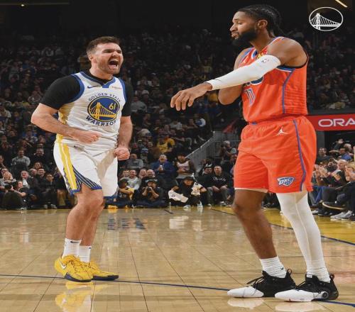 小庫裏上半場隻打了6分鍾,2投2中拿到5分。易邊再戰,雷霆一度領先到22分,再加上巴特勒膝蓋酸痛退出比賽、追夢5次犯規。大家以為比賽要進入垃圾時間,勇三瘋突然上線。每一個球員都能在進攻端做出貢獻,勇士單節狂轟44分!