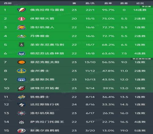 北京時間12月6日,今日的NBA常規賽結束了所有比賽,海角HJDO43.CCM一起看看西部的最新排名變動!