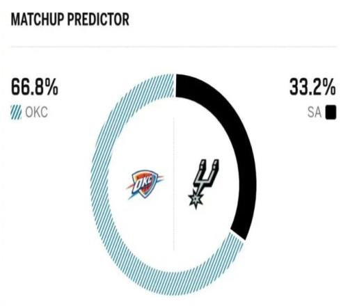 賽前,美媒ESPN對本場比賽進行了勝率預測,馬刺隊勝率僅有33.2%,依舊不被看好,雷霆隊勝率則高達66.8% 。