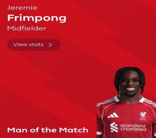 英超第19輪,利物浦主場0-0戰平利茲聯,利物浦球員弗林蓬被評為全場最佳球員。