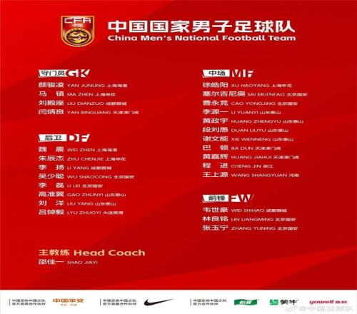 鋒線包括了韋世豪( 成都蓉城)、張玉寧(北京國安)、林良銘(北京國安)。對比久爾傑維奇在東亞杯時征召的隊員,整體上的人員出入有13人之多。不過,大部分的老人回歸入選也是讓平均年齡達到了28.5歲,確實有點老。