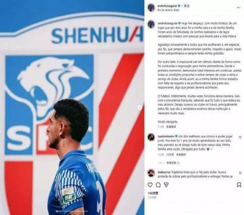 昨日接連官宣多名球員離隊並官宣新賽季首個引援的上海申花則遭遇了麻煩。昨天被官宣合同到期不續約的外援路易斯,在個人社交賬號上發聲,直接炮轟申花管理層。路易斯表示,他從續約談判一開始便表達了留隊的意願,並接受所有申花提出的條件,但他和家人卻遭到相關負責人的不尊重和非專業對待。