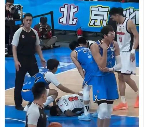 徐傑是第二節還是4分多鍾時,被周琦意外撞倒的,作為大中鋒,周琦體重巨大,撞到徐傑的膝蓋和腳踝,讓後者痛苦不堪,隨後倒地不起。在徐傑受傷後,北京隊立馬停止了進攻,有2位北京球員更是立馬采取行動,對徐傑進行關心。首先是作為前隊友的趙睿,他看到徐傑受傷,指了指後,將倒地的周琦拉起,然後蹲下來慰問徐傑的情況,並緊急招手呼叫隊醫過來。
