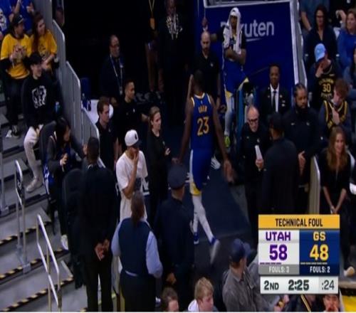 在勇士對決爵士的上半場還剩2分25秒時,爵士球員菲利波夫斯基出現明顯三秒違例情況,且幾乎在三秒區待了6秒時間,但裁判的無視讓追夢格林暴怒。