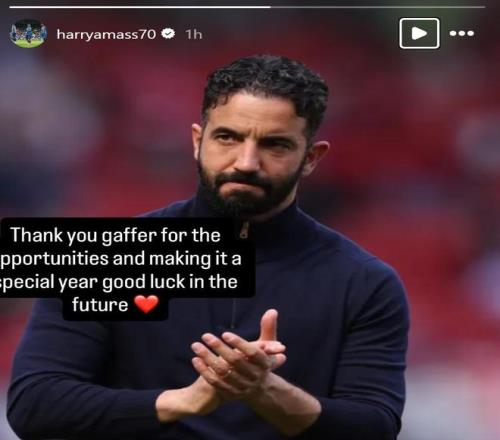 在阿莫林下課後,曼聯外租小將哈裏-阿馬斯在社交媒體發文告別。