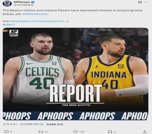 北京時間1月7日,據Hoopshype記者Michael Scotto報道,快船中鋒祖巴茨在交易市場上引發多支球隊的強烈追求,其中包括步行者和凱爾特人。快船同意交易祖巴茨,但是快船對祖巴茨的要價高達2個首輪簽,嚇退了不少追求者。