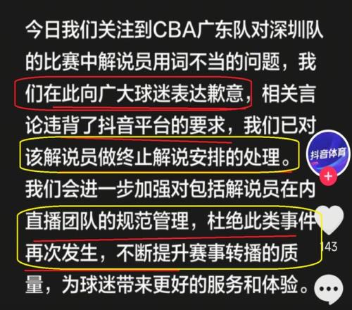 與此同時,抖音平台還表示接下來會對所有的解說員進行規範管理,從而避免此類事件再次發生!以便給球迷帶來更好的觀賽感受!