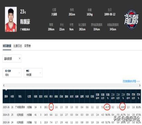 對比到上個賽季的場均6.6分,以及菜鳥賽季的7.4分,有不同程度的下滑,陳國豪的投籃命中率,三分命中率均創造職業生涯的新低。