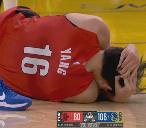 回到更衣室內,楊瀚森通過了開拓者隊醫的腦震蕩檢查,於是重回賽場。