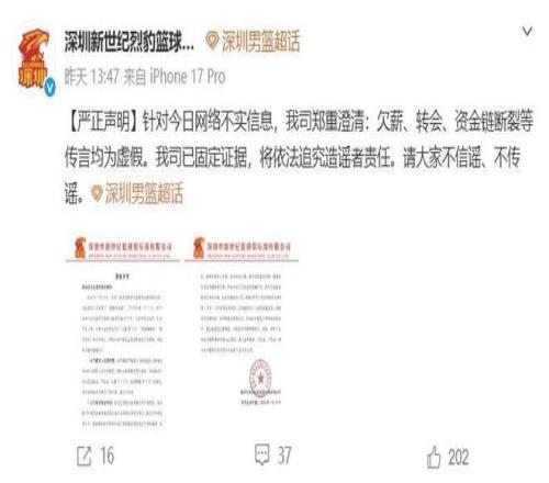 深圳隊本賽季戰績不錯,目前8勝6負的戰績排名聯賽第八,近期還分別戰勝了北京首鋼、上海隊、青島隊等強隊,目標直指季後賽,這其中不僅有球員的連續爆發,更大的功勞在於老帥鄭永剛指導。不過近期有傳聞深圳隊出現“球員欠薪、球隊可能會交易球員,甚至有球隊(俱樂部)資金鏈斷裂,麵臨破產”等信息,搞得人心惶惶的,對於這些問題深圳市新世紀籃球俱樂部有限公司做出了官方回應。