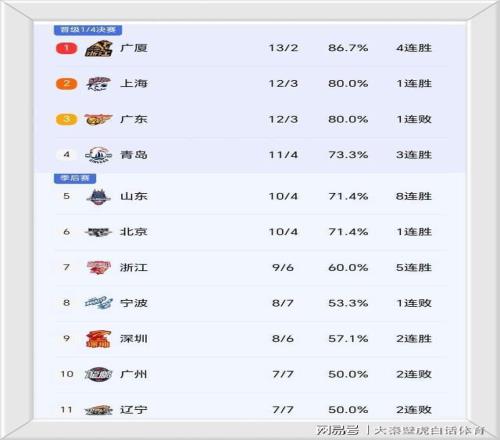 ③、拿到現存聯盟迄最長8連勝的山東隊力壓北京男籃,高居第5位;