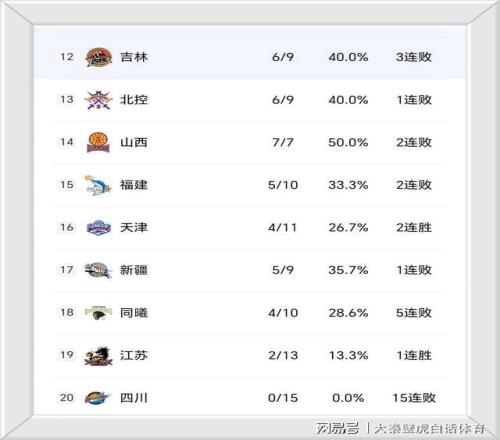 ④、15連敗的四川男籃賽季至今仍難嚐一勝排名墊底。