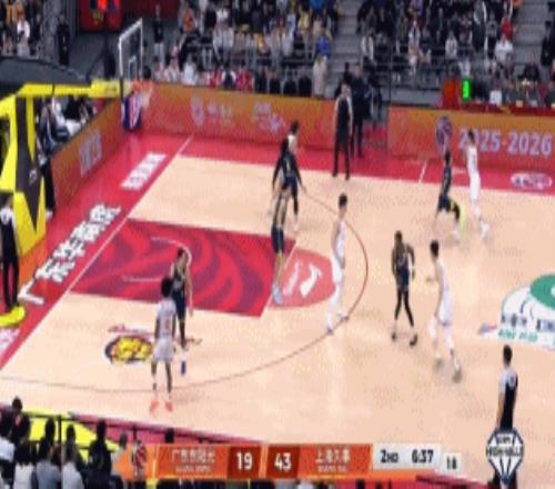 次節盧偉換上王哲林洛夫頓常規內線組合,洛夫頓開局製造2+1後再中三分3回合連得8分,薩姆納打進高打板拋投+三分回敬,薩林傑完全防不住洛夫頓,一拿球就被包夾,廣東進攻完全打不開,進攻空間也是越打越小,7分37秒,隨著洛夫頓三分再中,上海領先來到40-18!