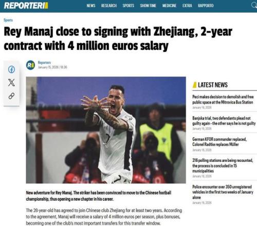 第三個,多家外媒爆料,馬納伊是浙江隊冬窗最重要的引援之一,合同為期2年,年薪高達400萬歐元,外加獎金,這也讓他成為阿爾巴尼亞足球曆史上收入最高的球員。不過,也有媒體報道,他是2年總收入400萬歐元,這也更符合中超外援稅前300萬歐的限薪令要求。