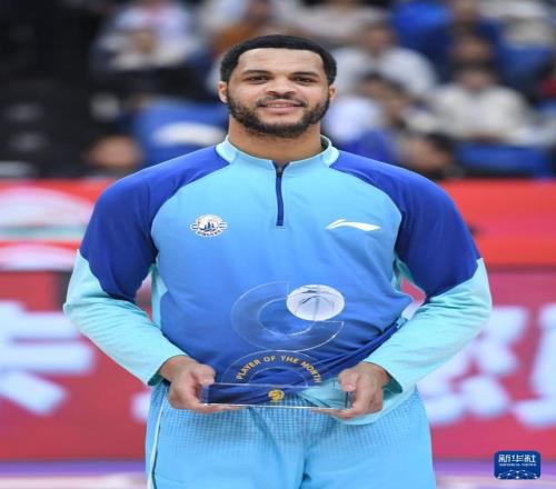 1月15日,青島嶗山啤酒隊球員韋瑟斯龐在賽前接受“月度最佳球員”獎。新華社記者 李紫恒 攝