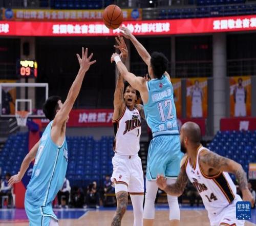 1月15日,青島嶗山啤酒隊球員段昂君(左一)在比賽中傳球。新華社記者 李紫恒 攝
