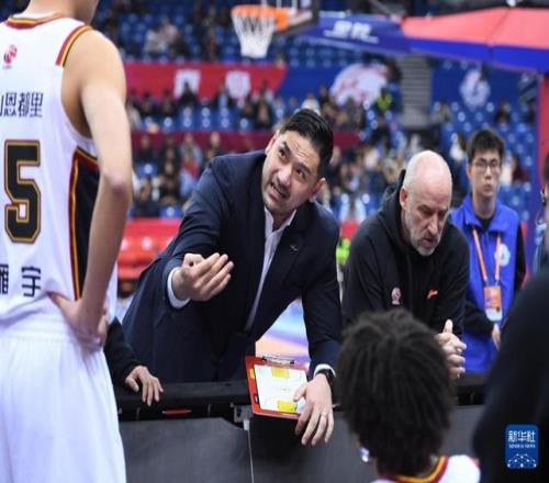 1月15日,青島嶗山啤酒隊主教練劉維偉(中)在比賽中向隊員布置戰術。新華社記者 李紫恒 攝