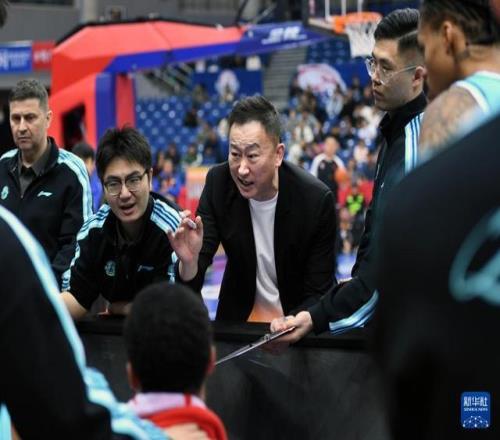 1月15日,吉林長白山恩都裏隊主教練鍾誠(中)在比賽中向隊員布置戰術。新華社記者 李紫恒 攝
