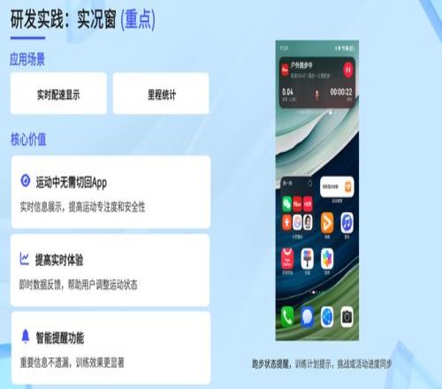 2)實況窗功能(重點實踐):作為鴻蒙對運動類應用最具價值的延伸能力,實況窗可實時展示配速、裏程、步數等跑步數據,核心價值體現在: