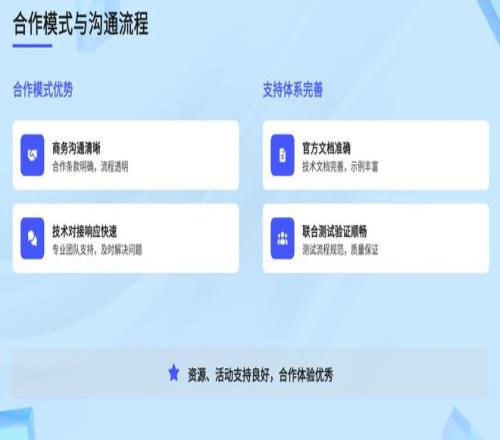 與鴻蒙生態的合作過程中,商務溝通清晰、合作條款明確、流程透明;技術對接響應快速,專業團隊及時解決問題;聯合測試驗證順暢,測試流程規範保障質量;官方還提供鴻蒙生態學堂等資源與活動支持,為項目推進提供了有力保障。
