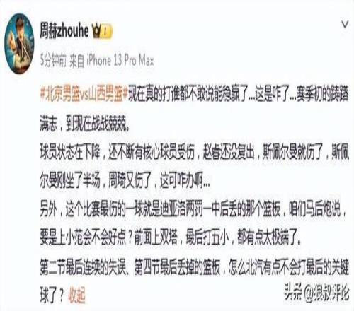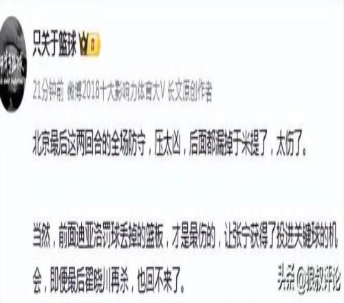 籃球記者賈磊發文點評: