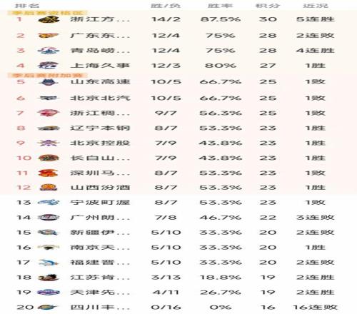 CBA最新積分榜