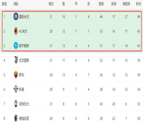 雖然尤文爭冠基本出局,但是依然還有2個對手能威脅國米,他們分別是AC米蘭和那不勒斯。本輪比賽,AC米蘭將在主場迎戰萊切,如果能戰勝對手,他們和國米的差距就將縮小到3分,再加上AC米蘭無需分心歐戰,下半賽季的體能優勢,隨時會幫助AC米蘭逆襲。