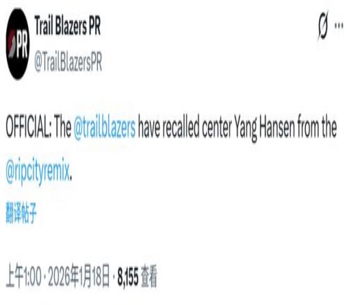 北京時間1月18日,開拓者官方宣布從混音召回了楊瀚森,他有望出戰今日主場對湖人的比賽。如果楊瀚森在這場比賽中登場,這將是一次背靠背的比賽。昨日G聯賽對陣藍隊,楊瀚森拿到14分17籃板2助攻2蓋帽,出現3次失誤5次犯規,籃板創G聯賽生涯新高。