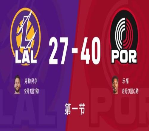 比賽開始湖人獲得第一攻,卡馬拉主防詹姆斯,克萊伯擋開順下上籃被犯規兩罰全中開局,西索科失誤詹姆斯反籃不中,霍樂迪轉換輕鬆上籃得分,西索科空切拋投也有開拓者4-2反超。克萊伯三分將功補過,夏普衝擊籃下被犯規兩罰一中比分追平。斯瑪特連得5分,克勒貝爾上籃湖人打了一波7-3將比分改寫成12-8,克林根內線吃餅製霸內線,克林根三分不中開拓者前場球,沒有中鋒內線太難了,卡馬拉切入直接獲得罰球機會兩罰一中分差來到1分,克勒貝爾空切折疊暴扣點燃全場,克林根快速到內線又被犯規了,6分55秒比賽進入官方暫停!回來比賽克林根兩罰一中12-14,湖人連續進攻不成,夏普三分,西索科兩罰一中開拓者16-14反超2分,詹姆斯下場休息,蒂米上來連得5分湖人還反超1分,節末開拓者利用內線優勢頻頻站上罰球線,首節罰了22次,首節戰罷湖人27-40落後!
