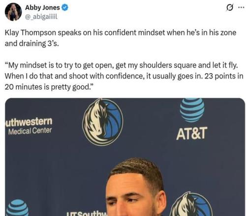 賽後被問到本場比賽自己狀態為何如此神勇,克萊表示“我的心態就是找到空位,調整好姿勢然後果斷出手,當我這樣做時投籃通常都能命中,20分鍾拿23分已經是不錯的表現啦。”