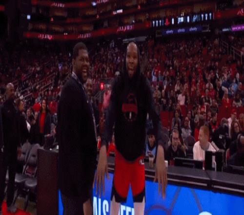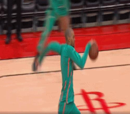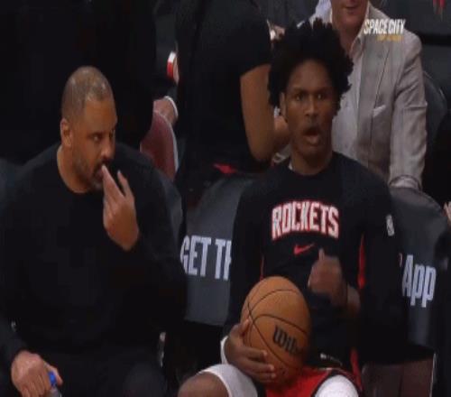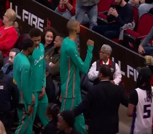 火箭那邊熱身完在場下幹等,身子都變冷了,球員開始精神喚散