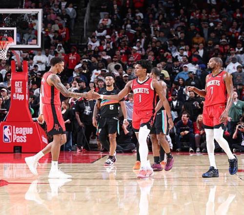 本場比賽中,火箭的先發控衛阿門-湯普森(Amen Thompson)的表現依然是令人喜憂參半。阿門全場出場39分13秒,投籃14中6,三分線外2中0,罰球5中4,得到了16分10籃板6助攻1搶斷2蓋帽的數據,還有3次失誤,正負值為+7。阿門在進攻端雖然依然沒有辦法找到外線投籃方麵的手感,但是他在中距離投籃方麵的表現倒是有些出人意料的,他在這方麵確實是是起到了一定的作用。不僅如此,阿門在防守端的表現也是可圈可點的,給對手的後場新星斯蒂芬-卡斯爾(Stephen Castle)製造了不小的威脅。當然了,作為一名控衛,阿門在傳球和組織方麵的表現還是比較一般的,他也需要進一步優化一下自己的進攻選擇以提升自己的進攻效率和成功率。
