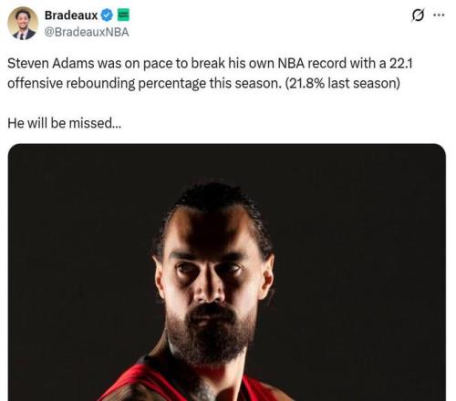 對於火箭隊來說,這無疑是個巨大的打擊,因為亞當斯的前場籃板能力是火箭隊“投搶模式”的核心支柱,本賽季當亞當斯在場時,火箭進攻籃板率高達45%,不在時下滑到38.6%。