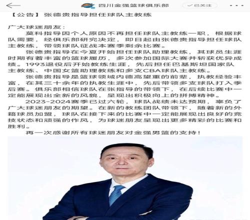 值得一提的是,張德貴不是第一次扮演“救火教頭”。 2021年他接替外教凱撒執教天津隊時,就曾帶領球隊時隔8年重返季後賽。