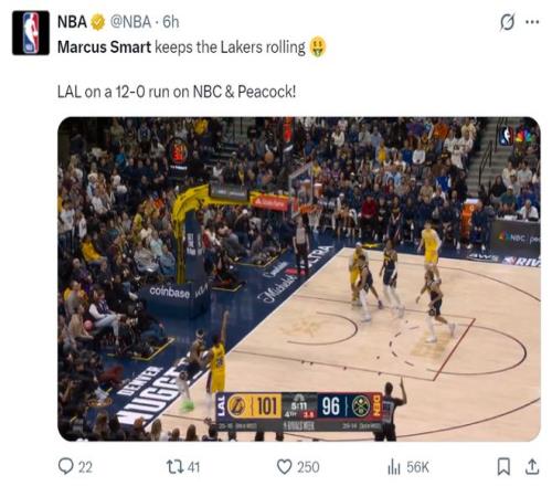 這場比賽的斯瑪特絕對算得上湖人的超級奇兵,終場前6分02秒斯瑪特製造沃特森進攻犯規,隨後斯瑪特進入Zone的狀態,5分44秒製造沃特森三分犯規三罰全中,5分10秒接東契奇助攻三分命中,2分43秒三分球再度命中,在這短短的179秒裏斯瑪特連拿9分,湖人直接將分差拉開到12分。