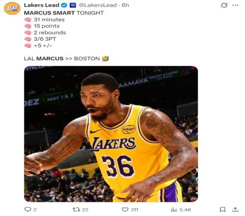 湖人媒體是這樣評價斯瑪特:斯瑪特是讓人意想不到的第三得分點,他在第四節無疑是湖人攻防兩端最出色的球員,巨大的三分球命中建立巨大的領先優勢。