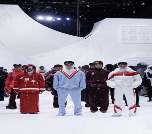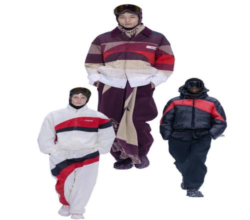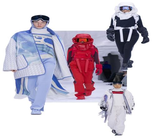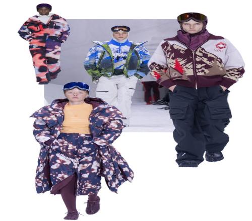 有趣的是,品牌還將靈感目光溯源至中國阿勒泰的滑雪運動起源,古老岩畫描繪的滑雪圖騰、阿爾泰山脈的雄渾線條、層層交織的冰川紋理與現代數字印花相結合,打造出跨越曆史與未來的時尚風格。