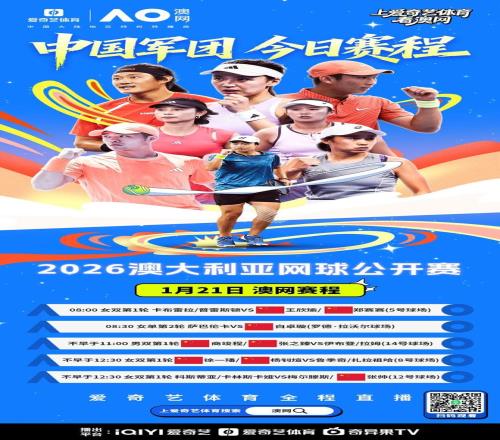 北京時間1月21日,2026澳大利亞網球公開賽第4日比賽將在墨爾本公園全麵打響。愛奇藝體育將繼續為您全程直播所有精彩對決。