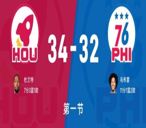 一上來76人先攻馬克西三分抬手打鐵,申京傳球失誤喬治反擊暴扣,奧科吉分球又差點失誤球掉到阿門手裏也扣一球,杜蘭特打了喬治一個3+1,烏布雷內外開花連得5分回應7-6開局!恩比德失誤火箭三線快攻得手,馬克西三分打鐵76人退防不及時史密斯輕鬆快攻吃餅,埃奇庫姆隔扣申京鎖定五佳球,回過來申京外線試試有了13-9,喬治內線吃火鍋杜蘭特轉換造成犯規兩罰一中。烏布雷單打申京到內線2+1打成他是76人開局階段發揮最好的球員,奧科吉、史密斯接連投中三分火箭打了一波6-0將比分改寫成29-12打停76人!回到比賽恩比德籃下吃餅,埃奇庫姆三分開火大了一波5-3將比分追到17-22,恩比德內線自投自搶分差回到一個球權,進攻好了防守積極性就起來了76人防成火箭24秒,火箭連續打鐵馬克西轉換三分比分打成22平,末段雙方連中三分伊森壓哨拋投不中34-32領先2分!
