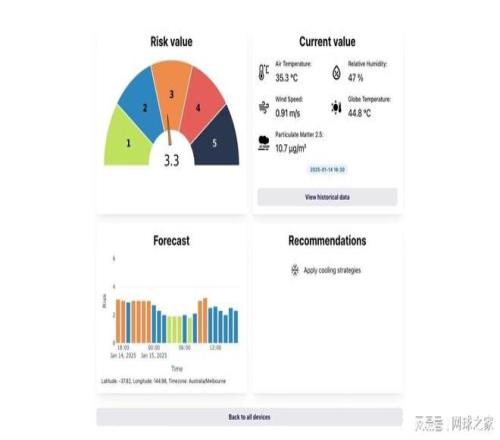 首先,澳網會在幾個主要球場和一個外場安裝一個帶有較多設備的感應器,以便全麵準確地實時搜集各種天氣數據。