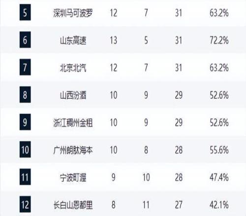 CBA第19輪戰罷,積分榜呈現"三強爭霸、中遊混戰、下遊掙紮"的複雜格局。領頭羊廣廈隊和排名第2的上海隊都輸球了,而排名第3的廣東隊取勝了,使得杜鋒的隊伍追了上來。山東男籃爆冷之後,排名繼續攀升。遼寧男籃慘敗止嘔,排名則是繼續下滑。