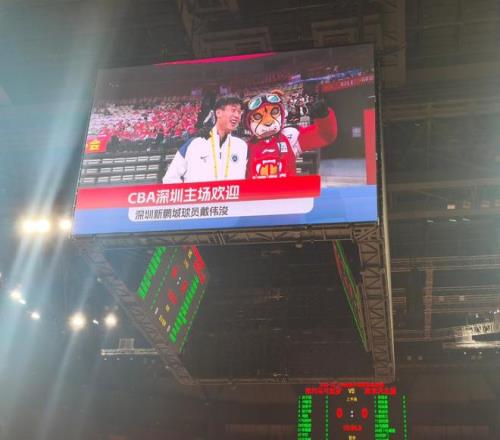 這場比賽,深圳新鵬城球員戴偉浚現場觀戰,還與深圳男籃的吉祥物進行了合影。
