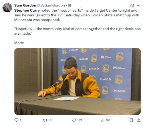 庫裏在賽後也回答了很多記者的問題,他談到了自己膝蓋的問題,他表示:昨天來到這裏訓練時就感覺膝蓋有些怪怪的,但打完了比賽感覺膝蓋還行,我決定利用這個夜晚的休息來恢複它,如果一切順利的話我計劃出戰背靠背的第二場。