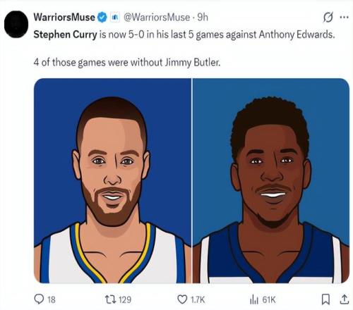 這場比賽後,庫裏最近五次麵對愛德華茲都取得了勝利,而且這5場勝利中有4場都沒有吉米-巴特勒,這說明庫裏成為愛德華茲的一個夢魘。