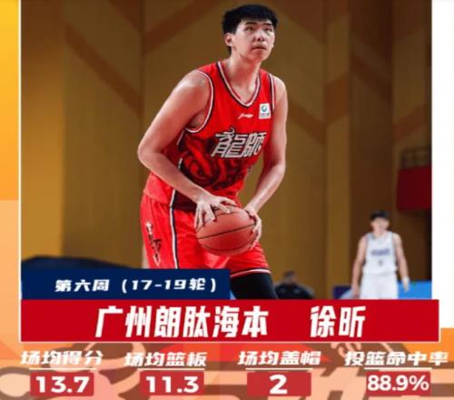 在過去的一周時間裏, 徐昕代表廣州隊打了3場比賽,收獲了3連勝,分別擊敗了北控隊、同曦隊和青島隊,在這三場比賽中,徐昕的出場時間達到了28分鍾,場均可以交出13.7分11.3籃板的兩雙數據,同時,還能夠場均送出2個蓋帽,充分展現出來了自己2米26的身高天賦。