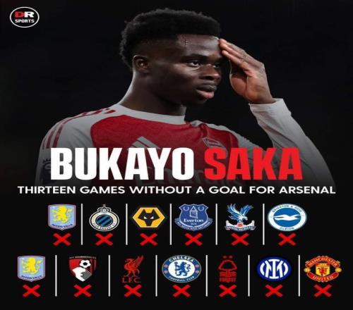 4 - 薩卡陷入進球荒,續約後狀態與高薪引關注