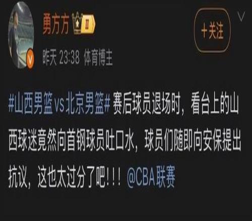 山西男籃主場和北京男籃的比賽打得非常激烈,結果是以1分之差不敵對手,遭遇了一波三連敗。據北京體育記者勇方方透露,在比賽結束後北京男籃球員退場時,不僅遭到了現場球迷辱罵,更有球迷從看台上向雷蒙等球員吐口水,引發了媒體和球迷的關注。在賽後的海角社区苹果在线入口發布會上,雷蒙也提到了此事,他表示球隊輸掉了比賽,球迷罵幾句發泄一下也就算了,向球員吐口水的行為就跌分兒了。